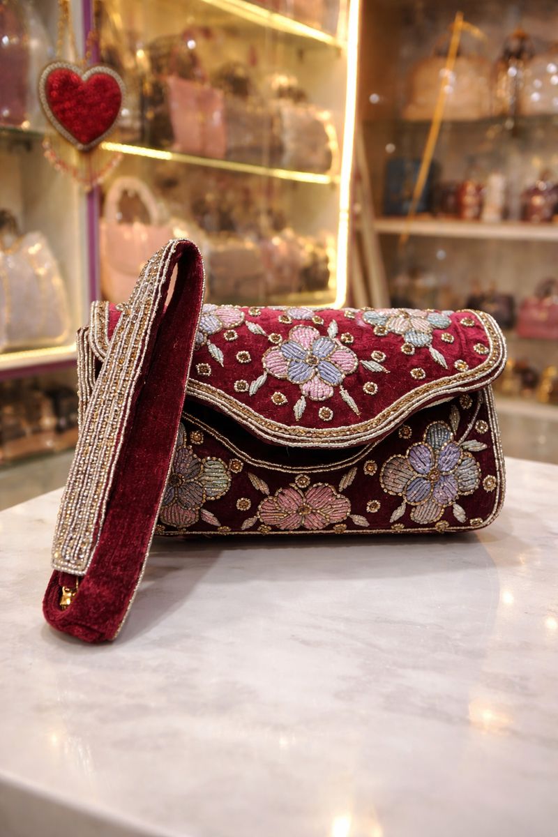 Designer ethnic clutch / sling bag maroon