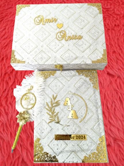 - Elegant Design: Fashionable Nikah Sign Booklet designed with Nikah booklet Box and nikah qubool hai pen exquisite Islamic motifs, adding sophistication to your wedding ceremony.