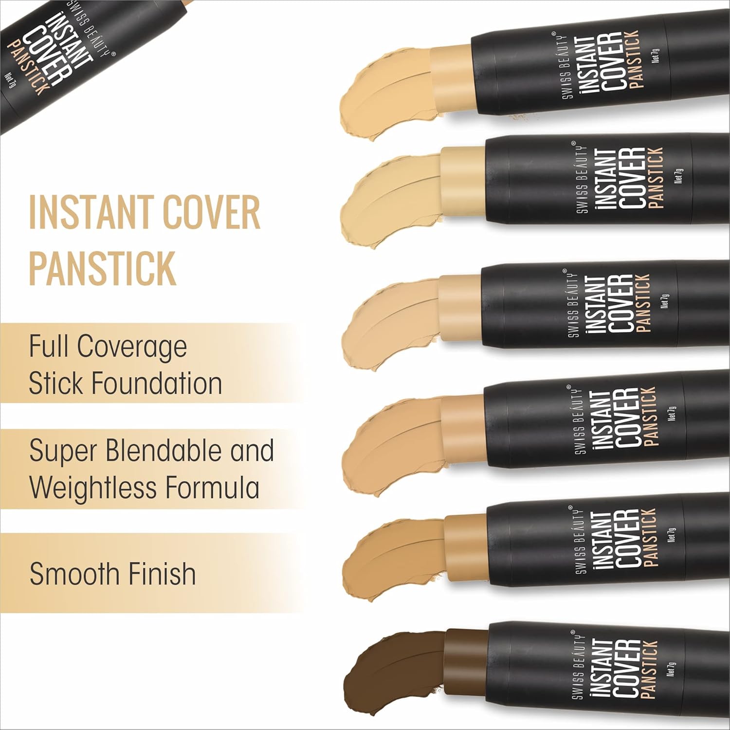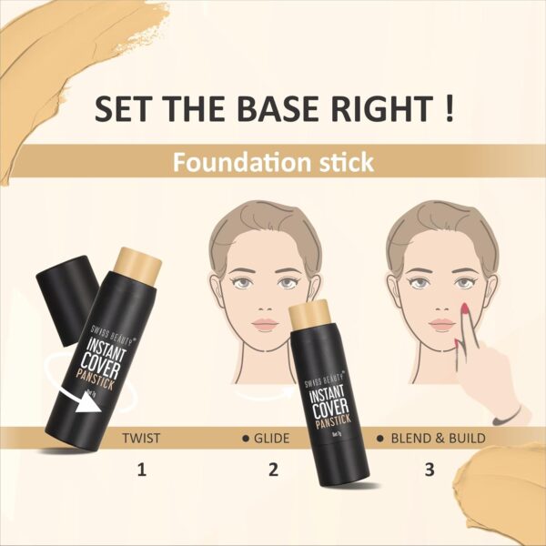 • Weightless Texture: Swiss Beauty Instant Cover Panstick has a weightless texture that covers all your skin imperfections including enlarged pores, dark circles, skin blemishes and fine lines.