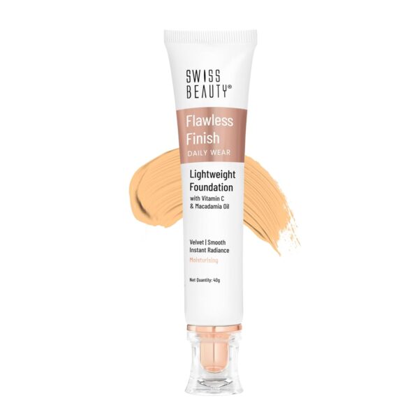 Swiss Beauty Flawless Finish Foundation | Medium Coverage | Lightweight |Oil-Free Formula |Radiant Finish | Shade – Medium, 50gm