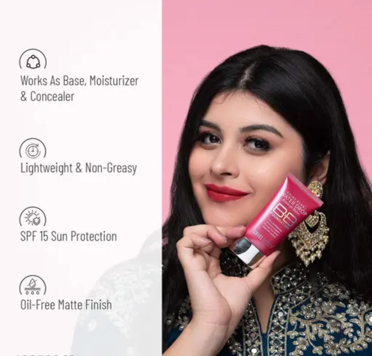 Swiss Beauty Matte Shiny Pearl Water Drop Blemish Long Lasting Balm BB Lightweight, Liquid Foundation, Face Makeup, Shade-01, 40ml