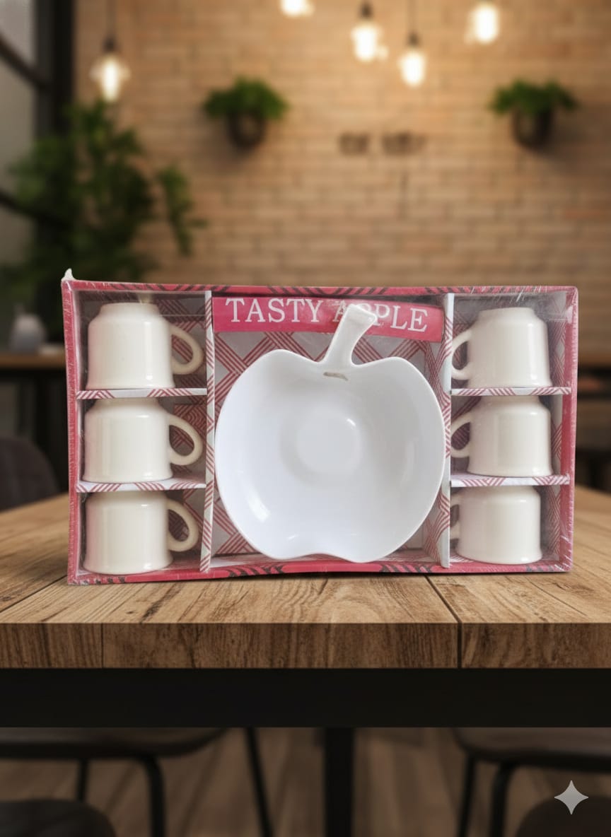 Seramik Set Tasty Apple 6 Cups and one apple Cut Bowl
